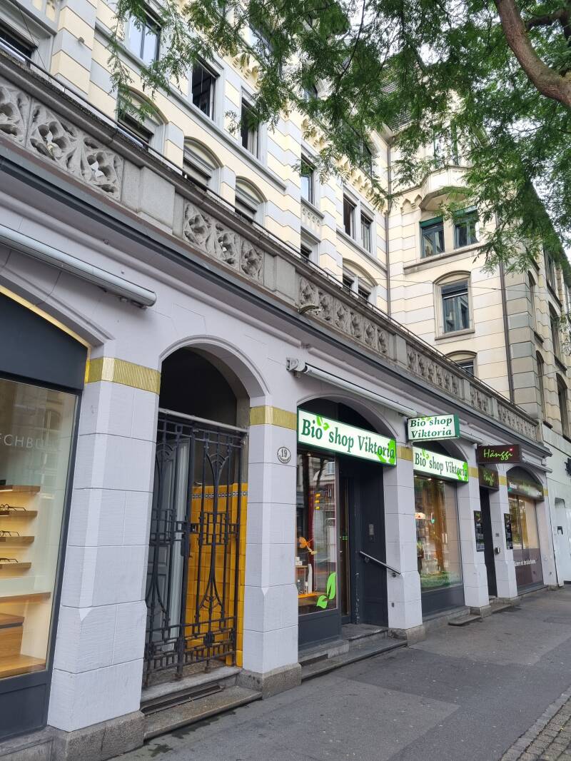 Bushaltestelle vor dem Geschäft
